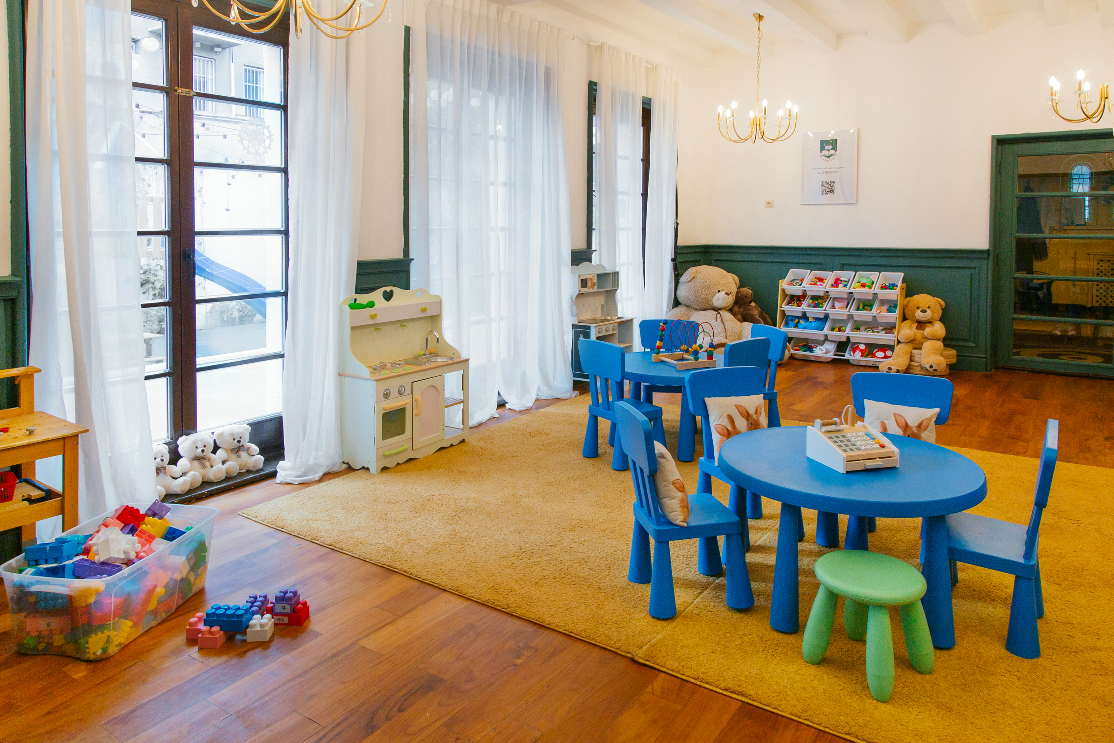 Детска градина CATBRIDGE е нова детска градина в сърцето на София, която набляга едновременно на 3 езика - български, руски и английски и балансира амбициозна академично програма с много подкрепящи интересите игри и развиващи талантите занимания. Целта на CATBRIDGE е да бъде на първо място среда - приятелска, образователна, подкрепяща и развиваща, изпълнена с много уют, внимание и грижа към всяко дете. Ние сме първата частна детска градина, която работи с две нови авторски програми - за финансова грамотност за най-малките и за балансирано хранене от най-ранна възраст.